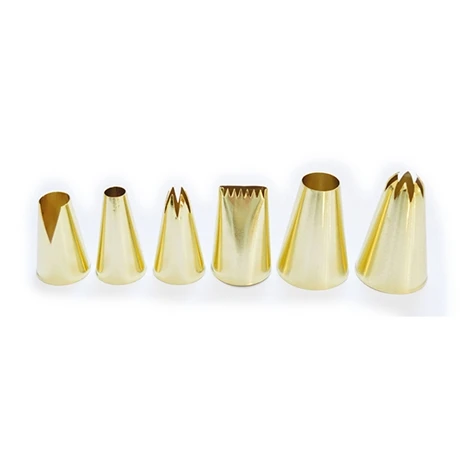 Avec ce coffret Scrapcooking de 6 douilles dorées, vous n’avez plus d’excuses pour ne pas faire des pochages sublimes. Ces 6 embouts différents s’adaptent à toutes les situations : décor de gâteau, cupcakes ou entremets ou encore pochage de meringues, macarons, choux ou éclairs ; avec ces accessoires vous obtiendrez des résultats dignes de professionnels.
