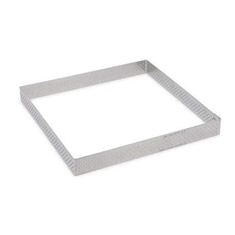 Créé en partenariat avec l’Ecole du Grand Chocolat Valrhona, ce cadre à tarte perforé carré DE BUYER est constellé de trous pour une cuisson uniforme des bords de tarte. Le bord droit permet une finition impeccable des petits gâteaux comme des entremets et un démoulage facile et sûr.