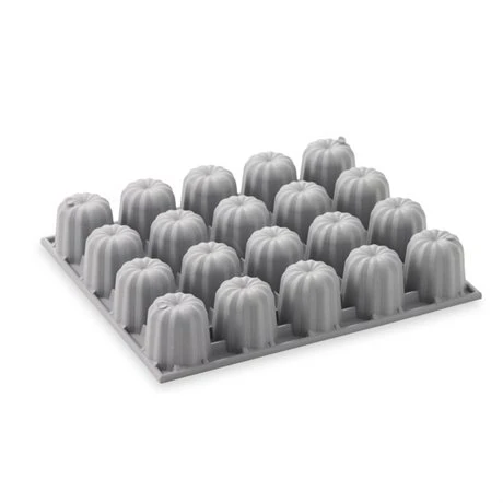 Grâce à un procédé unique de fabrication, l’élastomoule 20 mini-canelés De Buyer® cuit 20 mini-cannelés délicatement moelleux à l’intérieur et croustillants à l’extérieur. Ce moule professionnel permet une transmission thermique exceptionnelle de -70°C à + 300°C avec un gain de temps de cuisson de l’ordre de 20 %. Les micro-bulles composant la mousse de silicone, captent immédiatement la chaleur et la caramélisation des sucs est remarquable pour des biscuits à la texture et aux saveurs incomparables. Les mini-canelés se démoulent ensuite rapidement, sans beurrer, parfaitement formés et bien dorés.