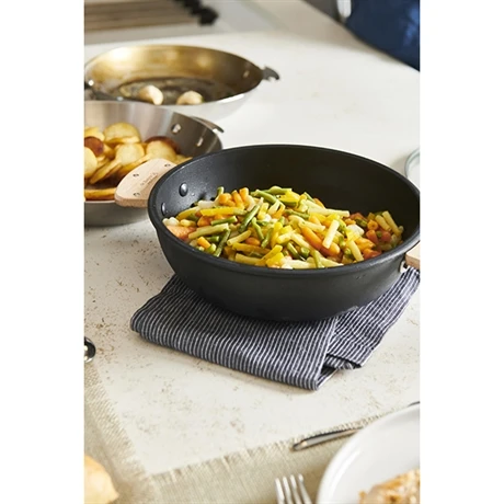 Fabriquée en fonte d’aluminium épaisse coulée sous pression, la sauteuse assure une excellente répartition de la chaleur et une cuisson douce de vos aliments délicats. Idéale pour mijoter, réchauffer ou cuire sans colorer le poisson, les légumes ou les céréales, la sauteuse est revêtue. Le revêtement antiadhésif de qualité garantit une cuisson saine ne nécessitant que peu de matière grasse.