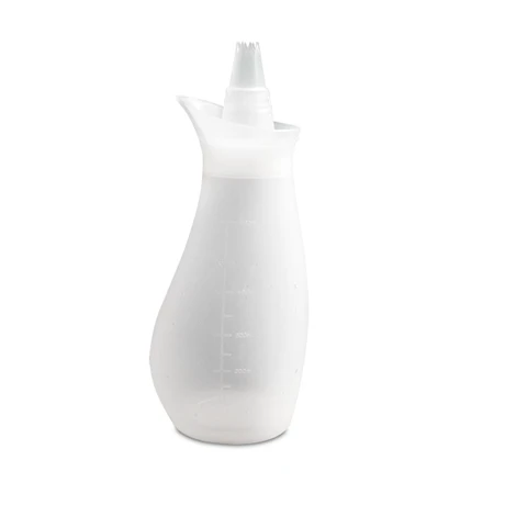 Le Flacon souple verseur en silicone avec 5 douilles est l’ustensile idéal pour verser vos préparations et décorer vos desserts ! En silicone souple, ses graduations intégrées permettent de doser très facilement les quantités avant de les verser. Transparent, il permet de visualiser en un instant la quantité versée dans le flacon.