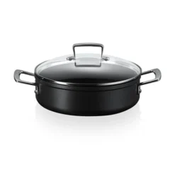 Tentez l’expérience de la polyvalence pour cuisiner tous les jours avec la sauteuse rondeau anti-adhérente 30 cm Les Forgées avec couvercle en verre. Le rondeau s’utilise comme une sauteuse ou un faitout dans lequel on peut mijoter une blanquette étuver des légumes, dorer des aliments, réchauffer et même confire des marrons glacés. Pratique à utiliser, c’est un ustensile de cuisson indispensable dans toutes les cuisines et donnant d’excellents résultats. Idéal pour des recettes salées ou sucrées, il passe avec talent de la zone de cuisson à la table ; l’étendue de ses capacités va vous épater et il va vous offrir pendant de nombreuses années des cuissons apportant un goût exceptionnel à vos préparations culinaires.