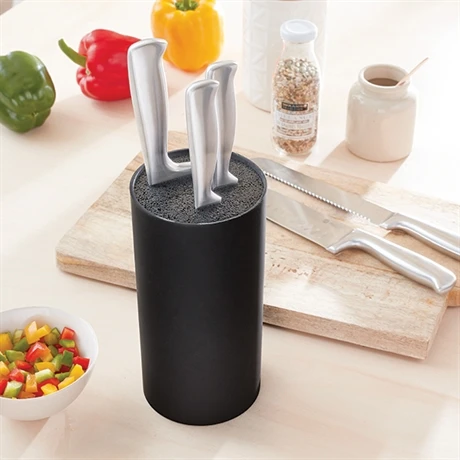 Idéal pour ranger vos couteaux en toute sécurité, le bloc universel permet de conserver tous les couteaux dont la lame mesure 20 cm ou moins, sans abîmer la lame. Les fibres mobiles intérieures s’adaptent d’elle-même à tous les types de couteaux. Pratique, il ne prend pas beaucoup de place sur votre table ou plan de travail et permet d’avoir tous vos couteaux à portée de main. Le bloc intérieur est amovible pour un nettoyage facile.