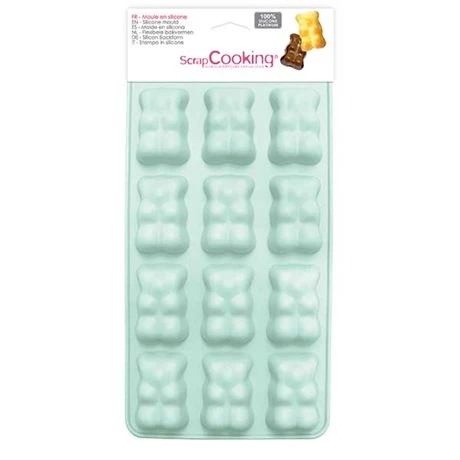 Le moule 12 oursons guimauve ScrapCooking® permet de réaliser 12 délicieux oursons à la guimauve, au chocolat, en pâte à sucre, à biscuits, ou glacés, pour petits et grands gourmands. 100% silicone platine de qualité professionnelle, le moule 12 oursons guimauve résiste de -60°C à +230°C. Antiadhérent et souple, il garantit un démoulage impeccable. Il peut s’utiliser au four, micro-ondes et au congélateur. Il se nettoie au lave-vaisselle. 1 recette est incluse.