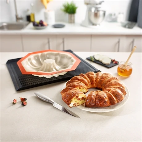 Le moule rosace Silpat a une forme originale qui vous permet de présenter un gâteau à vos convives au visuel inhabituel qui sort des moules à savarins classiques. Dans ce moule en silicone, vous pourrez réaliser tous types de gâteaux et cakes des plus basiques aux plus élaborés.