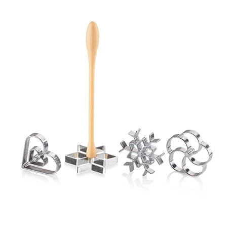 Réalisez de délicieux petits beignets grâce à ces moules à beignets 4 décors Delicia. Vous pourrez faire des beignets originaux; sucrés et salés en rajoutant de la cannelle ou des herbes aromatiques, du paprika, oignons frits… Le lot comprend 4 formes: flocon, étoile, coeur et fleur. L’utilisation est simple, avec ces moules en aluminium de bonne qualité. Vous ravirez toute la famille et épaterez vos invités avec des beignets hors du commun !