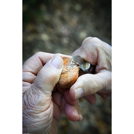 Amoureux de la nature et de produits fait-maison, découvrez la multi-utilisation du Couteau N°07 châtaigne, ail et dénoyauteur de chez Opinel. Les gourmands de châtaignes seront ravis ! Celui-ci vous permet d’inciser et d’éplucher les deux peaux de la châtaigne facilement. La lame en bec d’oiseau est pointue, courte et solide. Ses 4 cm garantissent d’être plus maniable qu’une lame longue : la main est proche du fruit ce qui offre un meilleur contrôle et d’appliquer une force maximum rapide et sécuritaire.