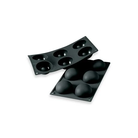 Une plaque 6 demi-sphères silicone platine : 30 x 17,5 x 7 cm.