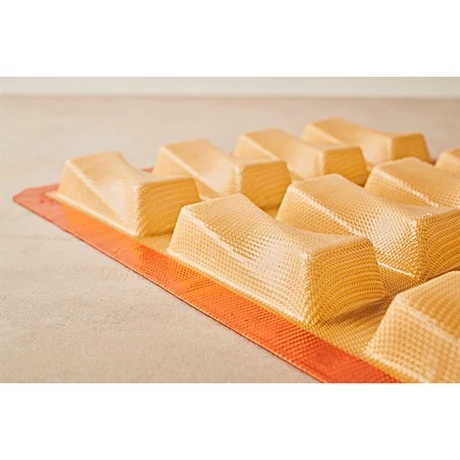 Le démoulage s’effectue sans problème grâce à l’usage d’un silicone anti-adhérent en surface couplé à une couche de toile de verre qui apporte de la souplesse à la plaque. Vous n’avez pas besoin de beurrer ou de fariner vos empreintes avant de les garnir de votre préparation, ce moule vous promet un démoulage facile et précis qui mettra en valeur la forme originale de votre réalisation.