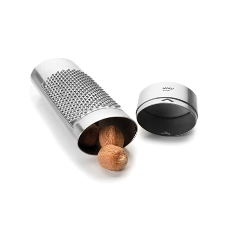 Le conteneur de la râpe à muscade stocke les aliments déjà râpés afin de les saupoudrer facilement avant la dégustation. Le compartiment est idéal pour ranger les épices entières et de ce fait les avoir sous la main facilement.